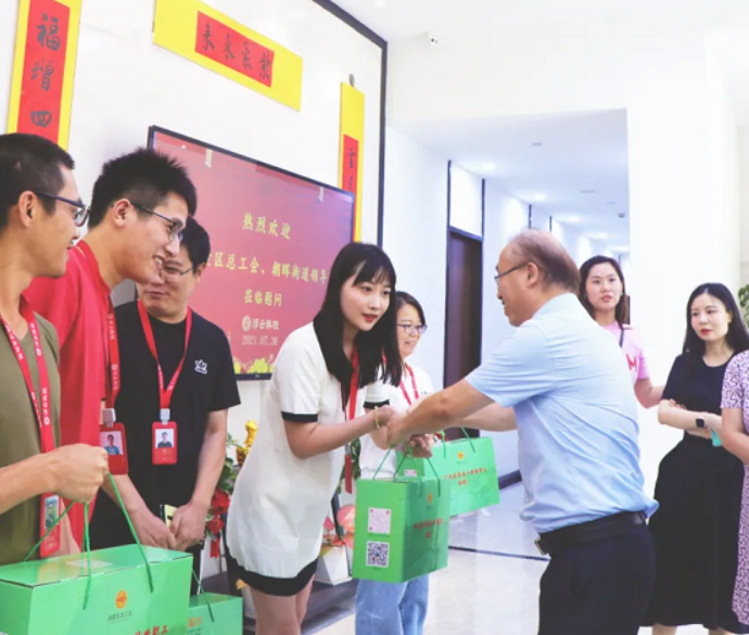 7月30日下午,夏日炎炎,空气闷热犹如蒸笼。朝晖街道党工委书记朱卫东,拱墅区总工会副主席吴一先一行莅临浮云科技,为我司职工送上工会 娘家人 准备的防暑降温慰问品,......