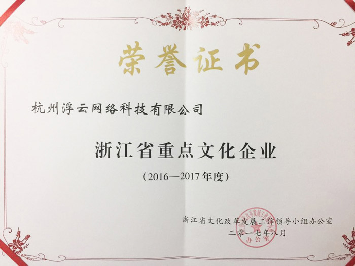 本次入选“浙江省重点文化企业”名单,是对浮云科技过去的充分肯定和认可,也将激励我们更努力得推动互联网与人文的结合,充分发挥重点文化企业的示范带动作用。