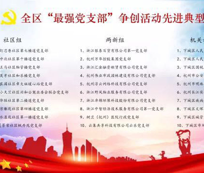 2018年6月29日,杭州市下城区“最强党支部”争创活动成果展评会顺利举办,并公布了全区先进典范名单,杭州浮云网络科技有限公司党支部(以下简称“浮云科技党支部”)光荣......