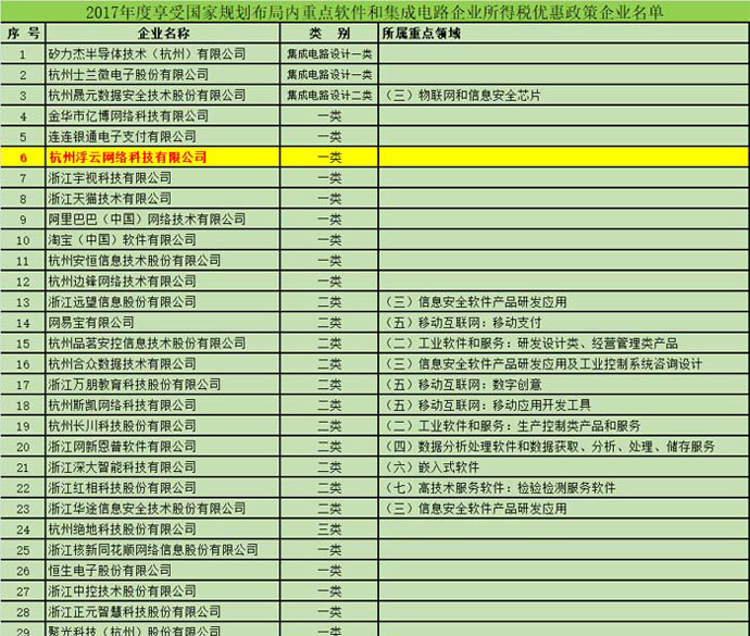 浙江发改委近日公布了2017年度国家规划布局内重点软件企业名单。全省仅有46家高新技术企业获此殊荣,有资格享受政府所得税优惠政策。......